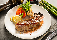 脊椎骨(1-6肋)兩側(cè)部位肉,部位肉酮體占3.6%,表面去風干肉、淤血肉及軟硬骨,保留自然脂肪,肉質(zhì)細嫩多汁,脂肪雜交均勻,有好看的大理石花紋,口感綿軟。
