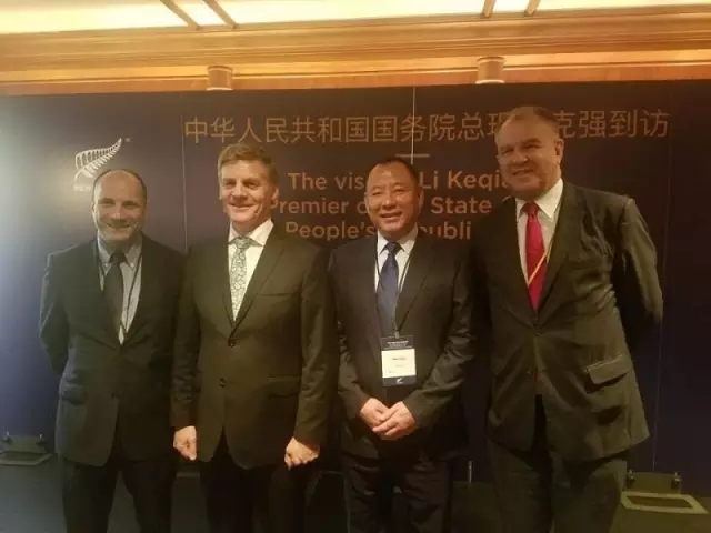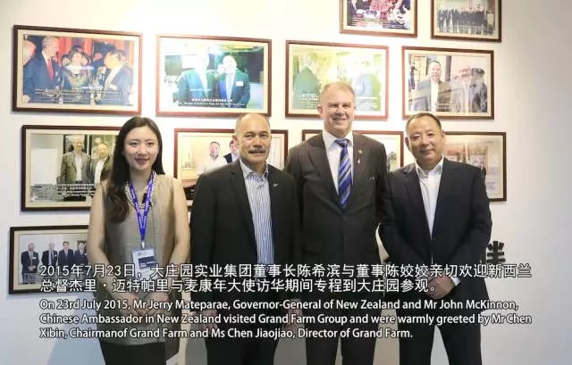 大莊園集團董事長陳希濱與新西蘭貿(mào)易部長麥克萊(右二)、阿蘭茨CEO大衛(wèi)(右一)合影