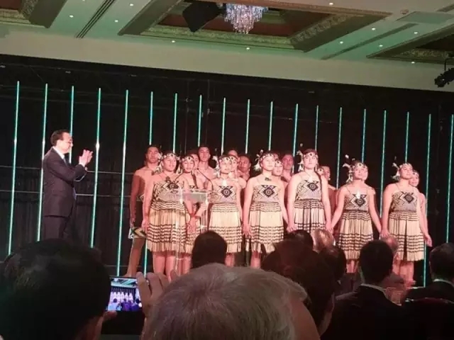 李克強總理欣賞新西蘭當?shù)孛褡屣L(fēng)情表演,并致以熱烈掌聲
