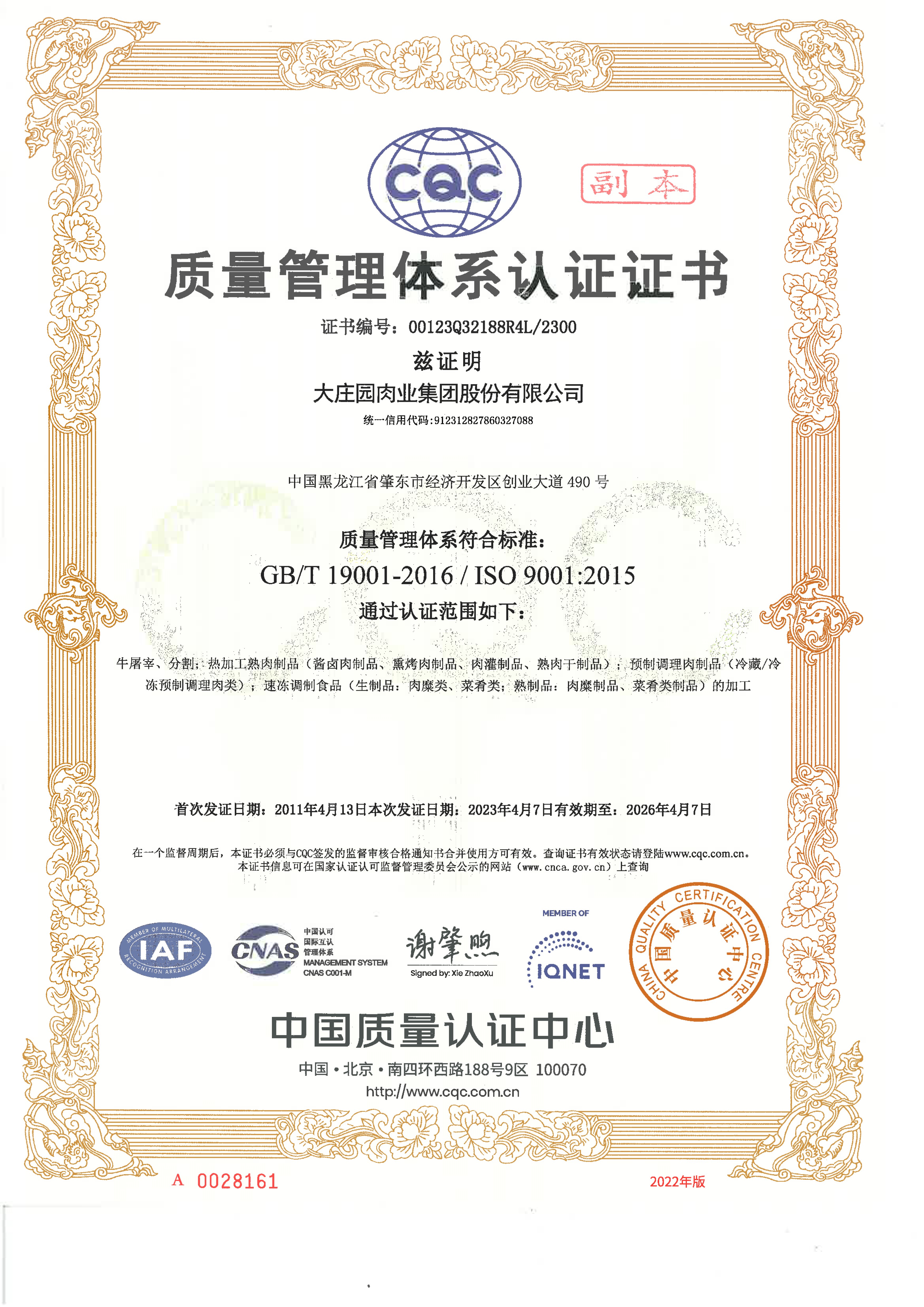 1992年7月29日,成為哈爾濱第一家定點(diǎn)屠宰單位,并榮獲“哈爾濱市政府菜籃子工程重點(diǎn)扶持企業(yè)”;同年在內(nèi)蒙古呼盟東旗建廠。